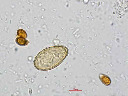 原来是灵芝孢子!其实灵芝孢子就相当于灵芝的种子。大小约8.5~11.2μm, 明显小于肝吸虫卵,椭圆形,细胞壁呈双层结构;黄褐色的细胞核部分具有灵芝的全部遗传物质并具有保健作用,因此只有将细胞壁破坏后,内容物才更易被人体吸收,但是灵芝孢子的细胞壁比较坚硬,难以破坏,所以完整的灵芝孢子会随粪便被排泄出来。