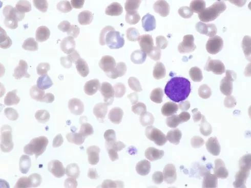 图5 血片镜下图,血小板数量不少,但正常形态的不多