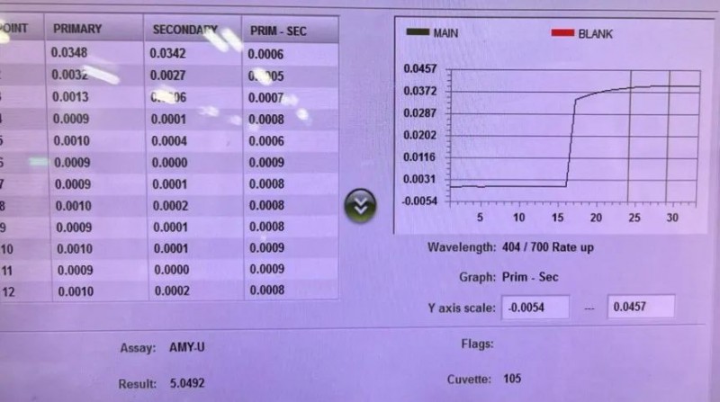 可见标本32倍稀释,AMY依然能瞬间消耗底物。AMY的浓度很高。