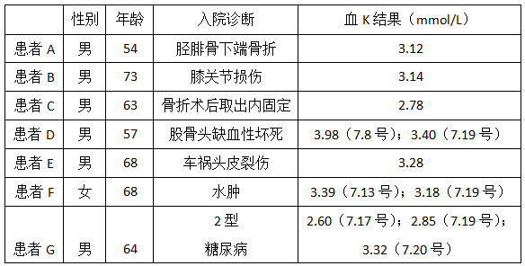 既然临床有补钾,效果应该是立竿见影,难道这补的钾莫名的消失了?而且还是连同7位患者的钾都不见了?
