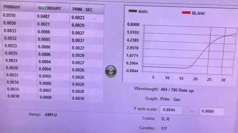 看错了曲线 ····· 2022-10-17的小文《哎呀差点犯错,幸亏标本种类和临床诊断引起我的注意》(现认为错了,已经删除)中曲线被认为是底物耗尽,认为标本中的AMY是高的。曲线如下: 当时随手翻了一张正常AMY的反应曲线: 当时总结为: 今天遇到的该患者AMY-U的两个反应曲线有着共同特点: ①曲线不直(引流液有干扰,试剂说明书中适合的标本不包括引流液)所以会出现负值; ②在我们监测速度的这两点,其实反应曲线已经平了,说明存在底物耗尽,其实该患者的AMY水平很高。 ····· 和真正底物耗尽的曲线像极了 ····· 2022-10-17的小文中反应曲线像极了真正底物耗尽的曲线。 具体见2022-05-30的小文《借助一异常增高的AMY,聊聊底物耗尽》:一引流液高的AMY反应曲线 ····· 仪器自动稀释后的反应曲线 ····· 手工稀释再仪器自动稀释后的曲线(这样出的结果才值得信赖) ····· 确定上一次看错了曲线 ····· 曲线真的好像;但我们今天(2022-11-15)研究发现:左边这张图的曲线吸光度没上来(很低,0.0几的水平);而右边这张图的反应曲线吸光度很高(>7)。 更加直观的证据是,今天我们想到了用生理盐水测一下,居然是以下反应曲线: 所以我们确定2022-10-17小文中的标本AMY是不高的,而误以为是底物耗尽是因为这个曲线有个很高的上升(误以为反应了,且迅速反应),其实是加了试剂二,引起了吸光度的变化,在图的布局中有个很高的上升,但是吸光度很低(当时没注意到)。 想说几句 ····· 所以我想说:①看错了曲线,信错了结果,要承认;②看曲线还得注意看坐标,不然光看图形相似,确实容易误解;③检验人依然要看曲线,且要认真看曲线。④做人做试验扎扎实实、实事求是。 ····· END 作者:胡正军(浙江中医药大学附属第一医院)