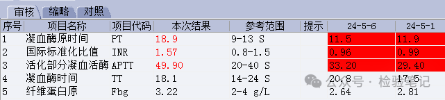审核报告时候,停了下来,PT和APTT突然之间起跳了!