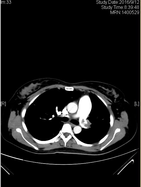 患者女,31岁,因“反复咳嗽、咳痰、痰中带血、气喘5月,加重7天,发热1天”于呼吸科就诊,心脏彩超及8月4日胸部CTA图1示肺栓塞,D-二聚体3.53mg/L,FDP13.24mg/L支持肺栓塞表现,5日置管溶栓,9月12日复查图2示好转,10月27日再次入住呼吸科,胸部CTA图3示栓子增多,查自身免疫系列、常规化学、G试验、病毒全套、甲状腺功能、肿瘤标志物等无明显异常,至此,该病人的诊断就陷入了困境,这个病人出现反复肺栓塞的原因究竟是什么呢?