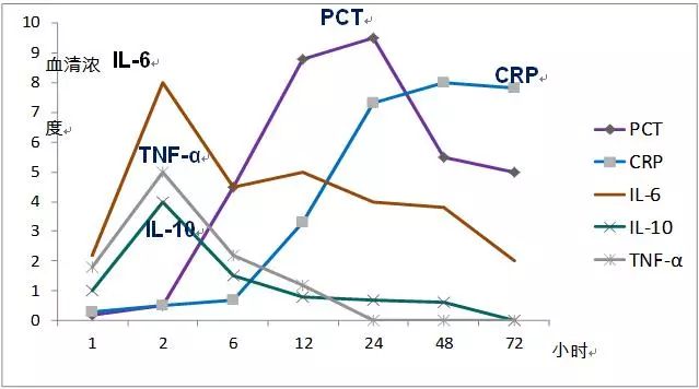 作为白细胞介素的一种细胞因子,IL-6主要刺激参与免疫反应的细胞增殖、分化并在机体的抗感染免疫反应中起重要作用。当炎症反应发生后,IL-6血清浓度的升高早于其它生物标志物,浓度升高之后诱导PCT和C反应蛋白(CRP)生成。[2]