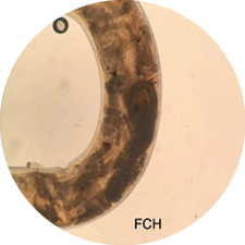 胃镜下异物送检验科鉴定为:钩虫成虫(雌性)显微镜10x10倍下观察:见图3-5。