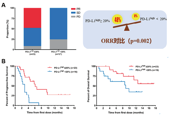 图5. PD-1单抗联合阿帕替尼治疗中CTC PD-L1阳性高表达水平对疗效的预测价值
