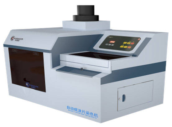 自动涂片染色机是国内外第一台集涂片、染色于一体的痰标本自动化前处理设备。产品以国家疾病控制中心(CDC)结核病控制中心《中国结核病防治规划•痰涂片镜检质量保证手册》为设计依据,完成痰标本自动涂片、自动染色等操作。自动负压装置保证了实验室生物安全。本产品提高了工作效率,实现了标准化操作,便于建立全国范围结核病疫情大数据,填补了结核病仪器诊断技术的空白。