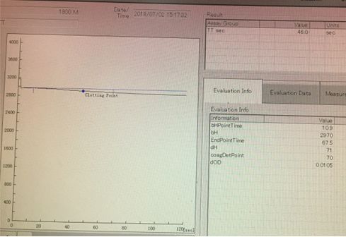 1、如图8,该检测结果没有“*”(低可信结果)提示,且曲线的∆dH也不明显(曲线平坦),仪器没有报警。报这个结果时一定要结合其他结果,并与临床医生沟通了解患者症状,如是否使用抗凝药等,切勿直接报告。